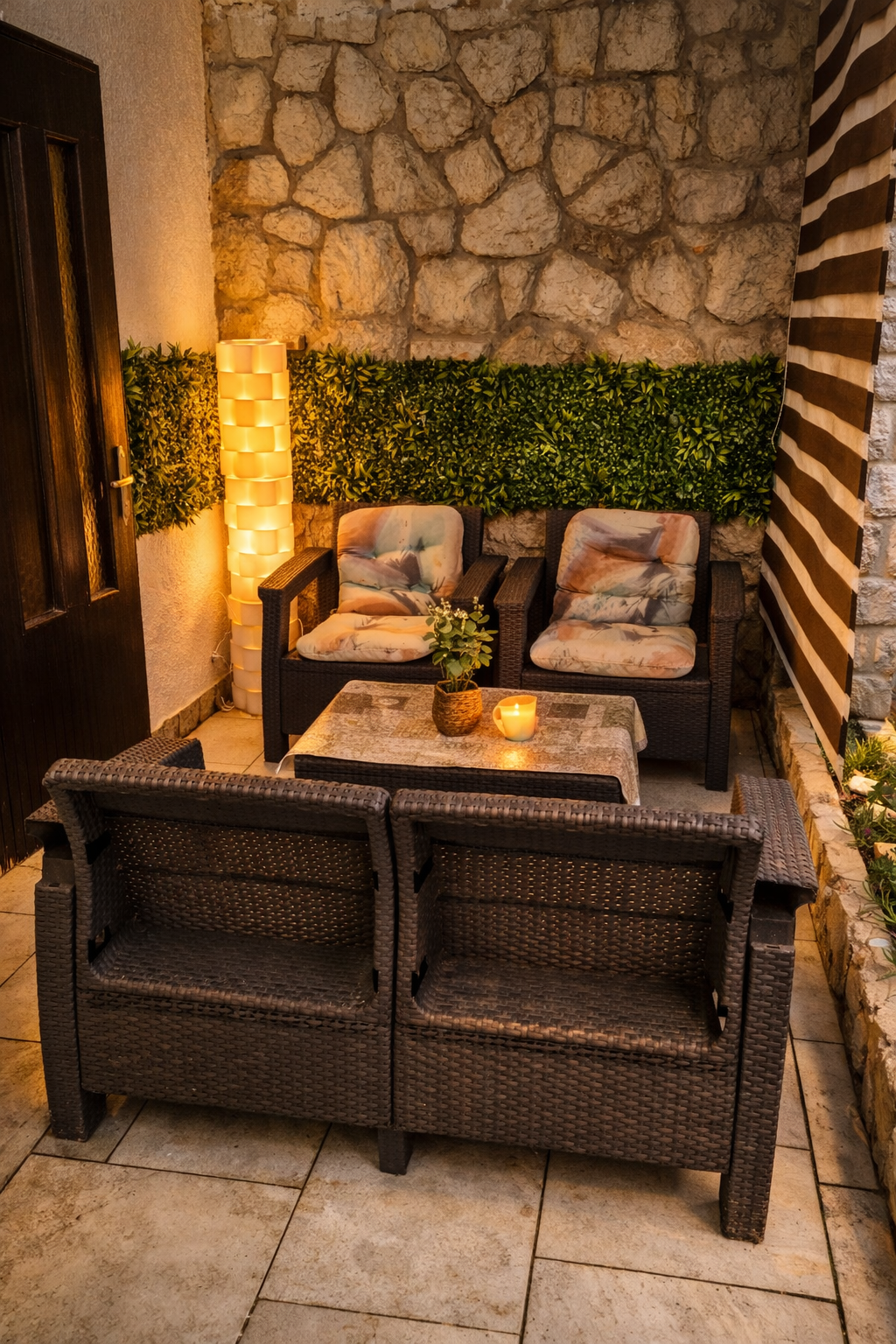 Ein ruhiger Bereich zum Entspannen nach dem Strand, für Morgenkaffee oder den Abend.